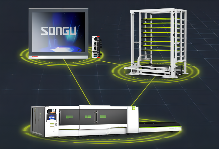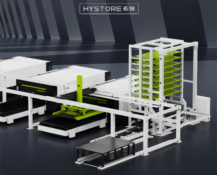 松谷柔性激光切割系统及智能仓储系统,针对金属工件批量切割作业时,